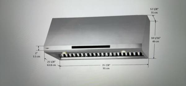 Ancona Kitchen Range hood, 36 inch wide, 850cfm, stainless steel with touch controls, led lights, dishwasher safe waffle filters in working condition. Selling after kitchen redesigned.