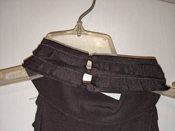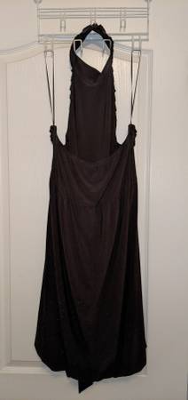 New, never worn Halter Neck Style Dress Buttons up at back of neck Ribbon like belt can be tied in front or back - your choice.