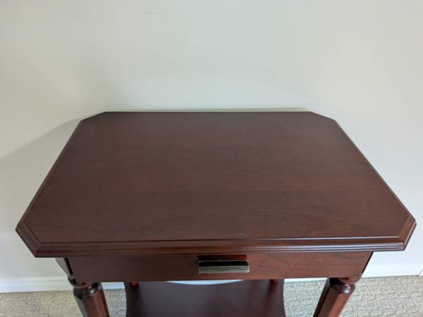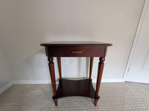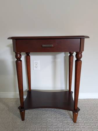 - Vintage Bombay Company End Table - Solid wood - Very sturdy and heavy - Full length drawer with - Dimensions: 22in x 16in x 28in - Price is negotiable, please message if interested