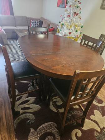 Solid wood Dining set with 4 chairs. Extra 2 chairs available. Table can be extended or made smaller.