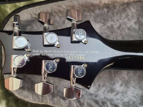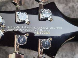 mahogany neck with ebony fretboard and PRS bird inlays, and a TonePros adjustable