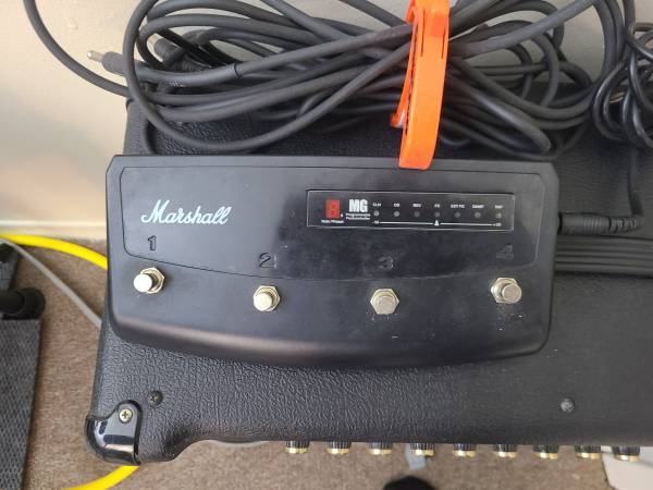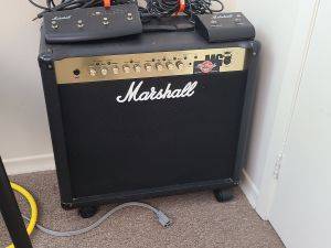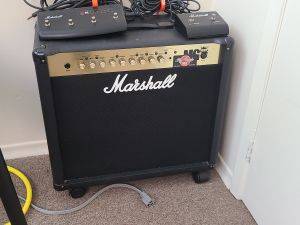 The Marshall MG100FX is a 100-watt, solid-state guitar amplifier that features four channels (Clean,