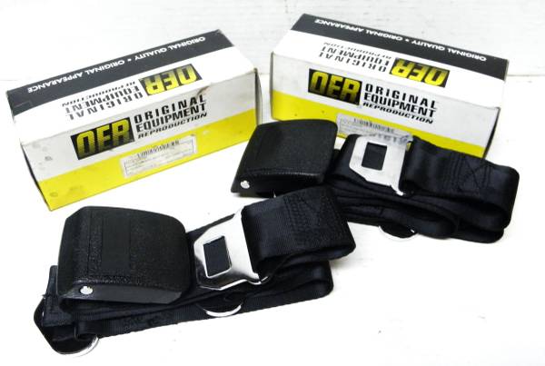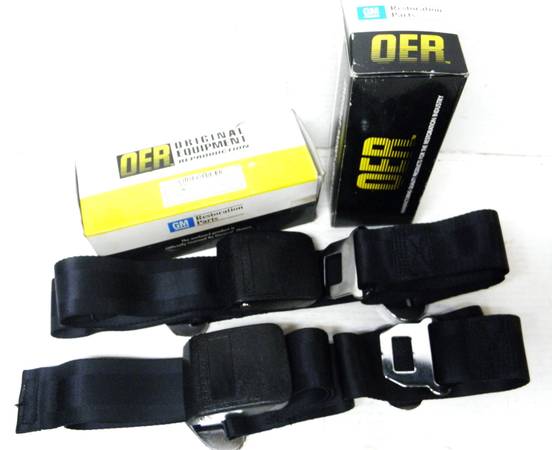 64 65 66 Chevelle Chevy II Beaumont GTO Olds Seat Belts GM reproduction replacement seatbelts from O.E.R. Black standard seatbelts can use in front or back, for all GM cars from 1964 to 1966 clean...