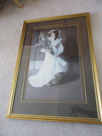 Sir John Lavery (1856-1941) led an interesting life entwined with Irish politics and art. This print of his acclaimed work "Spring" from 1904 is emblematic of some other time lost to humanity. What transpired before and after the seasonal moment in this piece? His works are regularly reproduced and framed for contemporary people who might like to meditate upon a distant past. This particular piece is fairly large and set in a lovely gold frame. The suggested price is $250. (Dimensions: 37” x 26”)