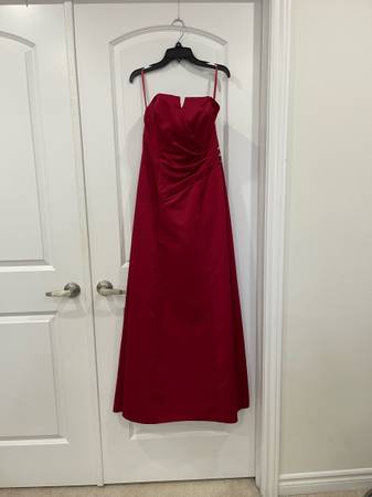 Beautiful candy apple red strapless dress size 7-8. Worn once. Has a seamless zipper, side gather with 3 crystals. Extremely comfortable and lightweight. Perfect for any special occasion.
