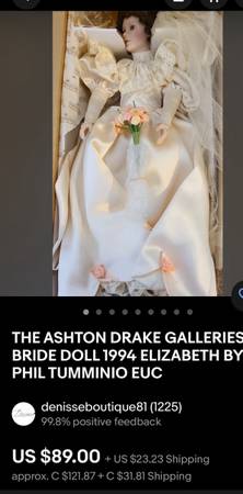 Ashton Drake bridal doll “ Elizabeth “ from the 1900’s Ashton Drake Galleries series also comes with Certificate of Authenticity provided