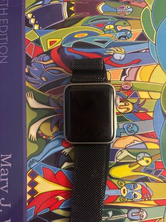 Series 3 38mm In good condition does have one small scratch in bottom right corner doesn’t effect anything Comes with band and charger