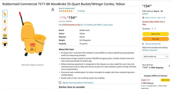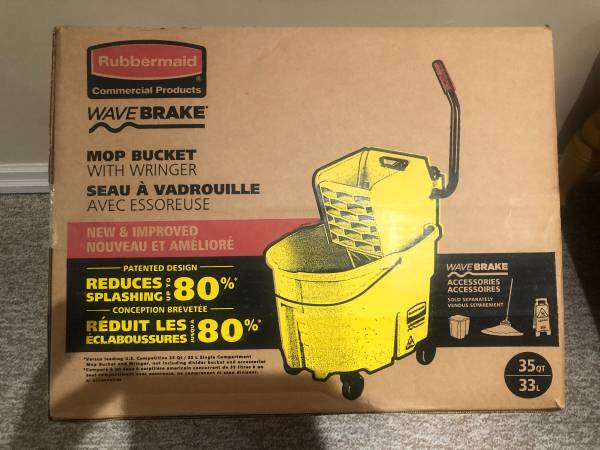 I have a used (but still in perfect working condition) commercial mop bucket with wringer Rubbermaid Commercial Products - Wave Brake Mop Bucket with wringer 35 QT or 33 litre capacity patented Wave...