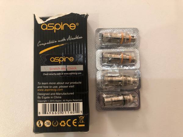 * all items come with their original packaging and boxes. The battery was purchased in 2018 and was used for approx. 1 year and has been stored since. The Aspire tank and replacement atomizers are brand new.