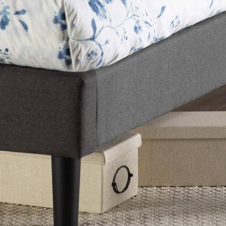 ZINUS Shalini Upholstered Platform Bed Frame, Mattress Foundation, Wood Slat Support, No Box Spring Needed, Easy Assembly, Dark Grey, Queen