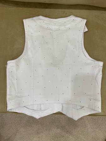 New never worn beautiful rhinestone, studded front and back cowboy vest. Perfect outfit with your cowgirl boots. White, 100% stretchy cotton
