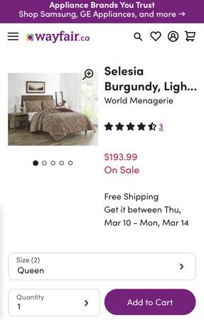 This exact burgundy paisley duvet sells on Wayfair.ca for $193.99 plus taxes = $219.