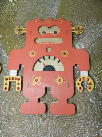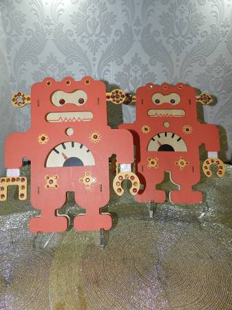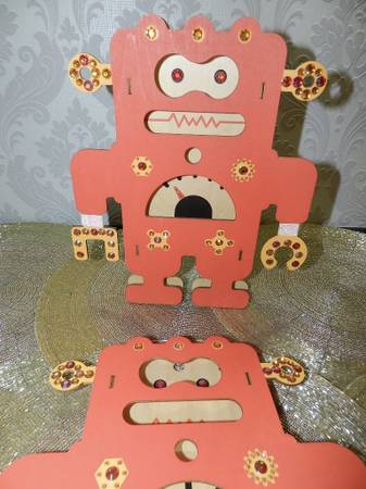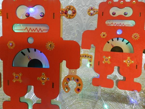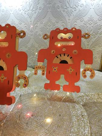 Great for a Christmas display kids+toy+gamer+bedroom++ Wood cut out rhinestone sparkle retro style sci-fi robots (lights not included) Can be hung on the wall+Christmas tree+table+dresser display.