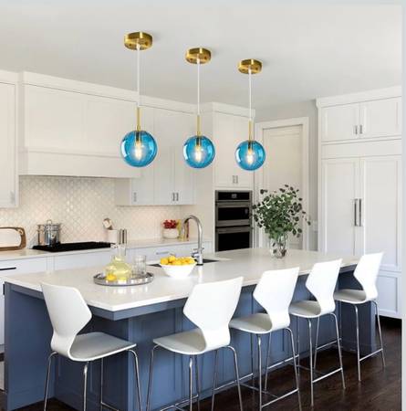 Blue Glass Pendant Lights Kitchen Island Lighting Globe Pendant Light Fixtures Modern Pendant Lighting for Kitchen Island Bedroom Living Dining Room Light Fixture(5.91in, 1-Pack)