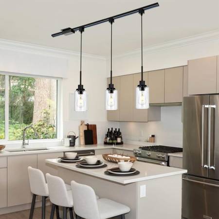 Black Ceiling Mount Pendant Light Fixtures with Clear Glass Shade, Hanging Lamp for Kitchen Island, Pool Table, and any room.