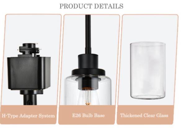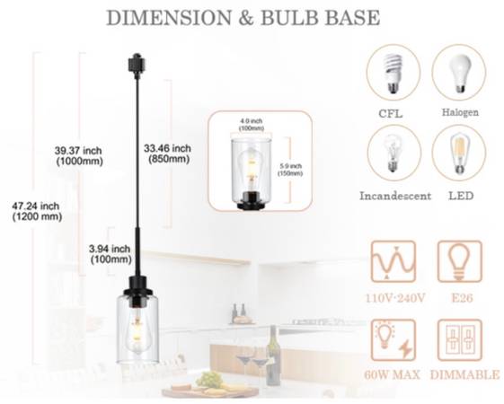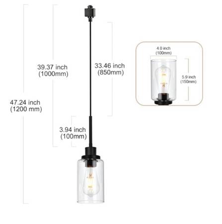 Lampshade: 4-inch dia. Overall Height: 47.2-inch. Wire Length: 33.5-inch. Bulb Base: E26 (Bulb NOT Included). Track sold separately on Amazon or hardware store. UL listed bulb socket to ensure long service life and safety.