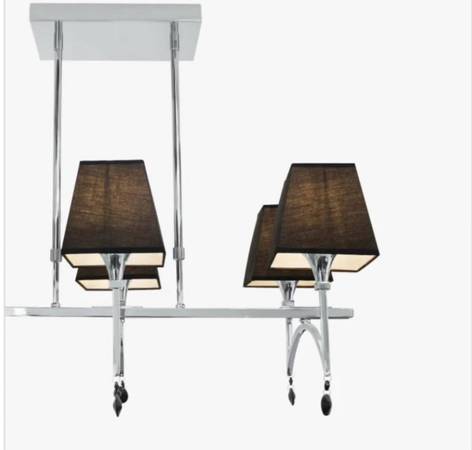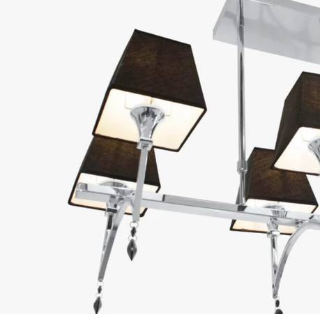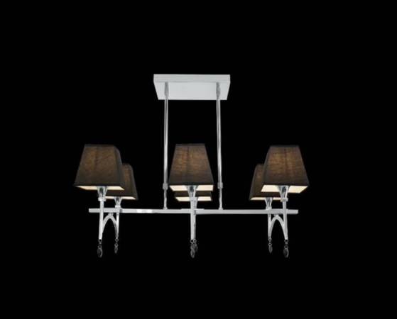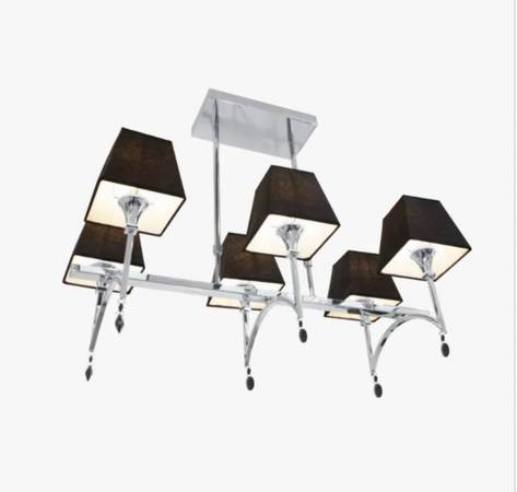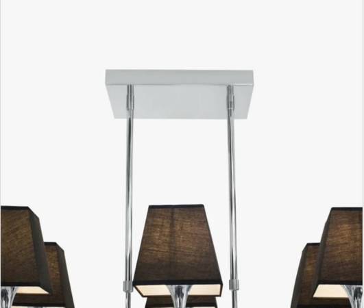 This modern and very sleek 6-light contemporary pendant will definitely make a statement. Made of chromed metal and black material shades that ensure ambient illumination without glare.