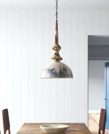This pendant is farm-house-inspired lighting that shows off it’s edgy charm with a hand painted hue.