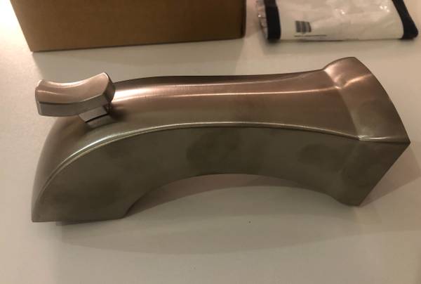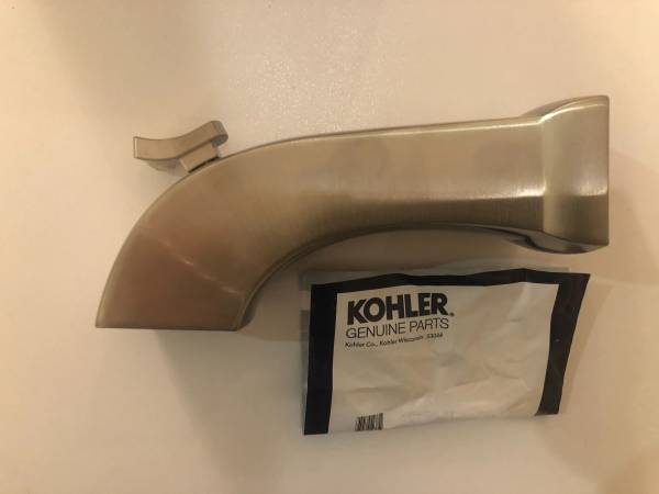brand new and still in the box beautiful brushed nickel Kohler TUB SPOUT - model name Ridgeport very high end (you can tell by how heavy it is), brushed nickel finish, pull up diverter, slip on...