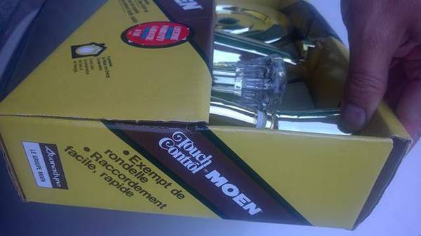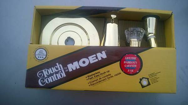 Touch control- Moen shower trim set + cartridge - gold color new in box never installed comes with washerless cartridge Reach me TEXT @ 289-2o3-13oo