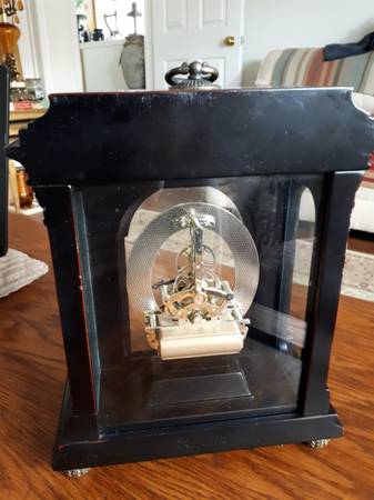 2004 BOMBAY Co. Working Mantel Clock- 3D Brass, Wood& Glass Case, 11”- Battery- $50 FIRM