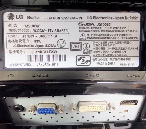 LG 27" Widescreen LCD Monitor MODEL: W2753V-PF - $120 (Mississauga)