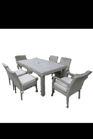 -ITEM ARRIVED AS SHOWN WITH SIGNS OF USE; DIRT SPOTS, DEBRIS, TORN WICKER