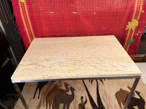 Coffee Table- Beige Stone/Marble and Chrome Base- 30” X 20” X 19.5”- $125