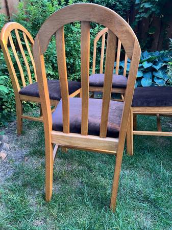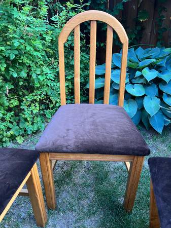 Set of 4 Dining Chairs- Solid Wood with New Upholstery Brown Velvet Fabric- $140 for All