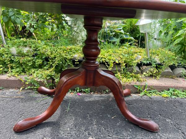 Vintage End Table- Solid Wood, Mahogany Stained, Turned Pedestal Leg- $125