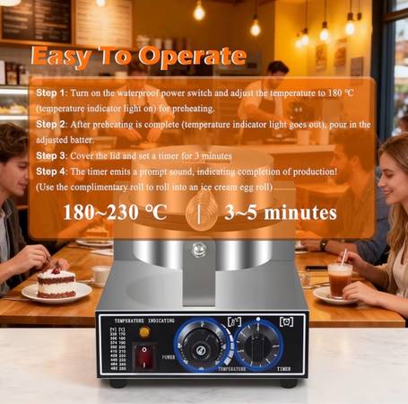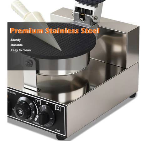 Electric Ice Cream Cone Maker 1300W Commercial Waffle Cone Machine, 110V Electric Stainless Steel NonStick Egg Roll Cone Baker Waffle Roll Maker Temp & Time Control for Restaurant Bakeries