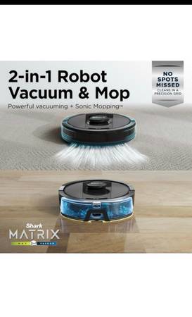 WHAT’S INCLUDED: Shark Matrix Plus 2-in-1 Robot, XL HEPA Self-Empty Base, 1 Filter, 1 Side Brush, 2 Microfiber Reusable Mopping Pads, 12oz. Starter VACMOP Cleaning Solution.