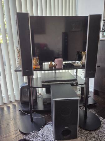 I'm selling a Sony surround sound system with powerful audio performance. This system is in good condition and includes tower speakers, a subwoofer, and a receiver. Perfect for enhancing your home theatre experience. This Sony system delivers immersive sound quality for movies, music, and games.