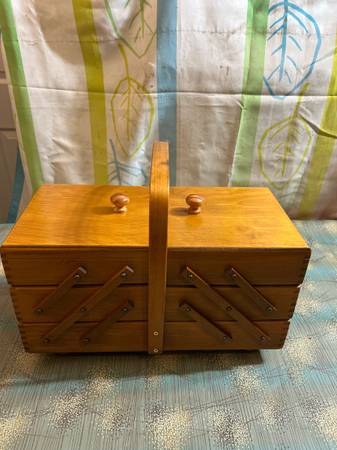 Vintage Sewing Supplies Accordion Box- 3-Tier Solid Wood Blonde Organizer- $85 FIRM