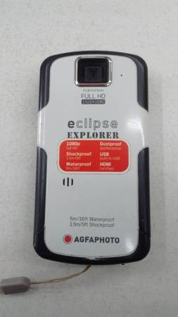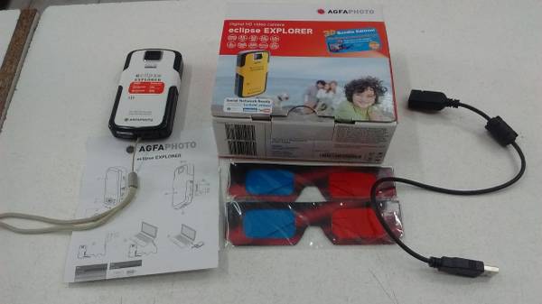 AgfaPhoto Eclipse Explorer video camera is the ideal companion for an outdoor vacation or sports event. This AgfaPhoto camcorder is waterproof and can be used to capture underwater video. This sturdy HD camcorder is also dust-proof and shock-resistant. Though it weighs only 5 oz and is not much bigger than a cell phone, the AgfaPhoto Eclipse Explorer video camera produces clear audio and big, sharp images in 1080p. The AgfaPhoto camcorder has a 2.5-inch LCD monitor, internal 4X zoom, panorama pan capture, and face, smile, and blink detection to make perfect shots easy. It also comes with 3D software and glasses to convert those fabulous vacation photos into an incredible 3D show. The AgfaPhoto camcorder has a flip-out USB plug to make uploading to a PC easy. This HD camcorder also comes with a wrist strap and tripod socket to make even the most spontaneous shots a snap.