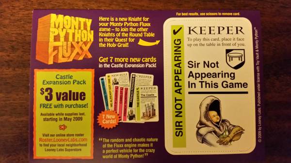 Monty Python Fluxx: Sir Not Appearing In This Game (https://boardgamegeek.com/boardgameexpansion/44489/fluxx-promo-cards) - free