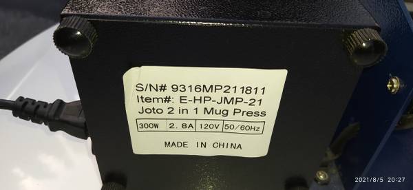 This mug press is ideal for pressing mugs, water bottles, and travel mugs.
