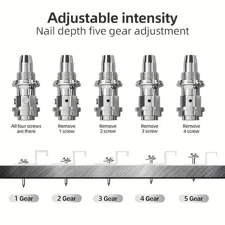 ♣ 5 GEARS POWER ADJUSTMENT: Manual nail shooting machine supports five gears of power control, which can be adjusted to fit different design requirements. The low-speed reducer is suitable for soft materials, while the high-speed reducer has high penetration power and is suitable for hard substrates. It is versatile and efficient.