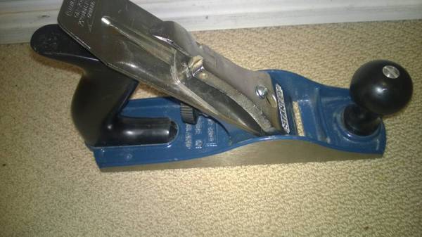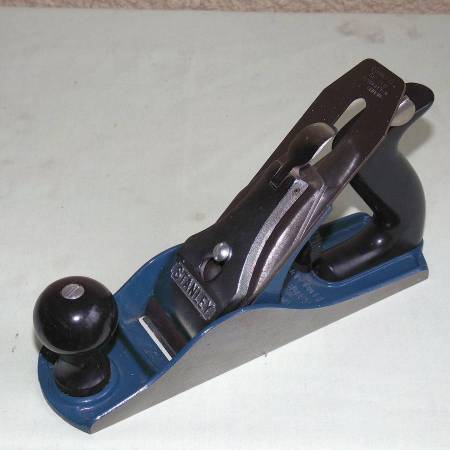 vintage Stanley no. 4 size bench wood smooth plane, original Stanley steel blade (12-204). A classic wood smooth plane made in England vintage type hand woodworking tool. Rarely used very good condition. Simply gorgeous tool. Nice hard to find Stanley well preserved over the years. Blue paint coating or japanning is in very good condition. Nice bright silver tone lever cap with vintage Stanley logo. Very good condition for the age. Still displays well. Should shaves wood like a dream. Nice and tight, found as part of a older gentleman's tool collection. It is a pleasure to use this old tool. Tool has some tiny few marks. All original parts marked "made in england" behind the rear handle the iron is marked with a vintage stanley logo, the original iron 12-204, lever cap is marked with a classic Stanley raised steel logo. All parts have clean easy motion. Adjustment nut turns easy, all clean threads,it is clean under the frog (good japanning under frog, not rusted out like most its age, good japanning, blue tone),screws are not locked up. The tool was taken apart and carefully cleaned it was found with a light coating of oil. The bottom plane is smooth no issues, some very light oxidation. Blade edge has few nicks or dings and still factory original no rust or pitting. Well kept by a older woodworker. Lifetime tool.