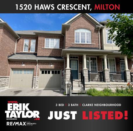 πͺ§JUST LISTED!! π1520 Haws Crescent, Milton π‘ Townhome by Tiffany Park Homes π 3 Bed π 3 Bath π° $3,025/Month β