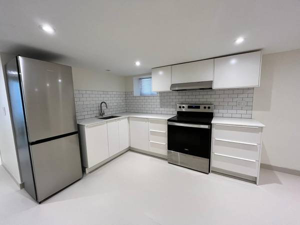 Newly renovated with brand new kitchen (550 sq. ft.) Basement bachelor/studio. $1600/month, (includes utilities and laundry). 6"7 ceiling height. The unit has central air. 10 minutes by bike to U Of...