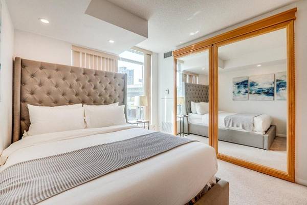 2BR Condo - Free Parking - Park & City View in Toronto offers a spacious apartment with two bedrooms, one bathroom, and a comfortable living room. The property includes a balcony with city views. Guests enjoy free WiFi, air-conditioning, a fully equipped kitchen, washing machine, and TV. Free on-site private parking is available.