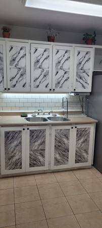 Fully furnished with bed, sofa, dining set, TV, and kitchen essentials