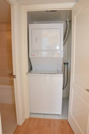 Occupancy for the 505-sqft 1-bed, 1-bath condo. Central AC and heating. 1 underground parking spot. 1 private locker. Private balcony. Water included. Included appliances: fridge, stove, microwave, dishwasher, washer, dryer, and range hood. Building amenities include: fitness facility, yoga room, elevator, party room, guest room and visitors parking.