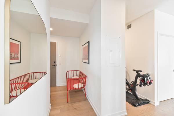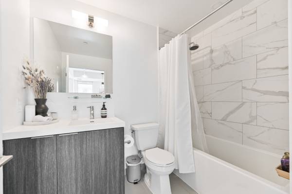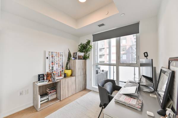 Discover contemporary urban living at its finest in this beautifully designed 2+1 bedroom split-plan condominium by Daniels, located in the sought-after DuEast Boutique. Enjoy ultimate privacy with a thoughtfully separated bedroom layout, each room offering generous space, abundant natural light, and unobstructed south-east corner exposure. The open-concept living and dining area is framed by expansive floor-to-ceiling windows, showcasing vibrant city views and seamlessly extending to a private wrap-around terrace - ideal for morning coffee or evening relaxation. The modern kitchen is equipped with sleek quartz countertops, a stylish backsplash, and a blend of stainless steel and integrated appliances, creating a space as functional as it is elegant. The spacious primary bedroom features a large closet and a spa-inspired ensuite bathroom, while the versatile den offers the flexibility of a home office or guest space. Additional highlights include convenient in-suite laundry, one premium parking space, a storage locker, and access to an impressive array of building amenities, including a state-of-the-art fitness centre, outdoor terrace, party room, and communal lounge. Perfectly situated in the heart of the revitalized Regent Park community, this residence places you steps from parks, shops, cafes, and effortless transit connections-offering the ideal balance of comfort, style, and urban convenience.