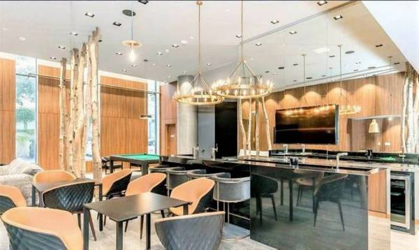 Occupancy for the 588 sq-ft 1-bedroom + den, 1-bathroom condo unit. Central AC and heating. Included appliances: fridge, stove, dishwasher, microwave, range hood, washer and dryer. Utilities excluded. 1 locker included. Building amenities include: fitness facility, movie room, steam room, elevator, lounge, pool, BBQ, party room, bike storage, concierge, pet spa and more.