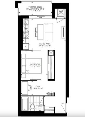 Stylish 1-bdrm + den suite in the Canvas condo building located near Danforth and Woodbine. Featuring an open concept kitchen and living room with floor-to-ceiling windows, one 4-piece washroom and private balcony.