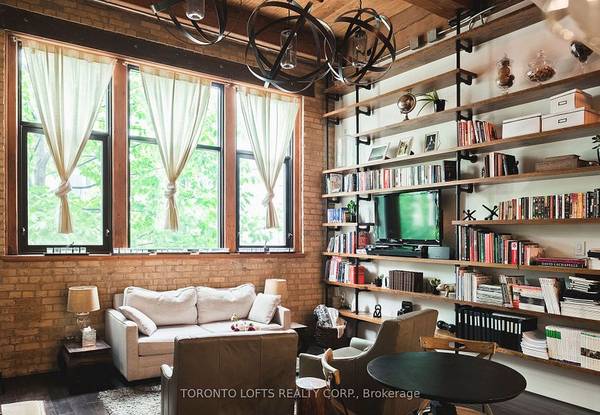 Wallace Station Lofts ** One-Of-A-Kind Large 940 Sf 2 Level, 1 Bdrm Authentic Hard Loft W/Pkg & Lkr! Featuring High 14 Ft Original Wood Ceilings, Exposed Brick Walls, Cozy Gas Fireplace, Wood Floors & Custom B/I Floor To Ceiling Lr Shelving. Modern Kit With S/S Appl's & Bkfst Bar. Prime Junction Locale (86 Walk Score & 96 Bike Score) Just Mins To Bloor St, Dundas W Subway, Go & Up Trains & West Toronto Rail Path. High Park Also Nearby! Note: Pets Allowed.