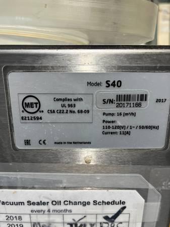 Turbovac Heavy Duty Commercial Vacuum sealer, purchased new in 2017. 30"wide x 30"deep. Good working order, works with all commercial bags. Comes with multiple sizes of vacuum bags (approximately 500), heat seal tape, and mineral oil for oil changes. For pick up only, $650 or best offer. Model size no longer made. For reference, new approx $5000-$7000.