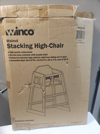Secure seats for kids during meals. This Winco CHH-104 walnut wooden high chair.
